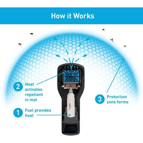 The Thermacell MR300 Portable Mosquito Repeller with Holster is very effective at repelling mosquitoes by forming a 15-foot mosquito protection zone just minutes after being activated. The MR300 Repeller with Holster can be used during virtually any outdoor activity to repel annoying mosquitoes, stopping them in mid-air before they come into contact with skin. The MR300 is the newest Thermacell Portable Mosquito Repeller and includes a new-and-improved holster specifically designed for optimal use with the MR300 Portable Repeller.