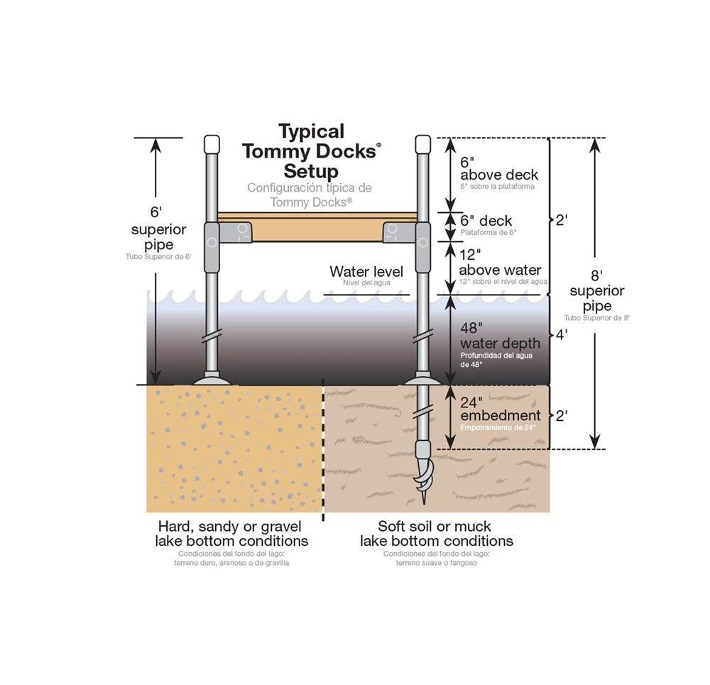 - Additional suggested purchase of Tommy Dock’s auger wrench – (both normal duty or heavy-duty) Part number TD-10085, It is a valuable convenience tool that assists in installation and removal of dock post pipe and augers